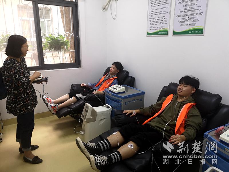 参加活动的大学生记者正在体验治疗项目。记者陈泉 摄