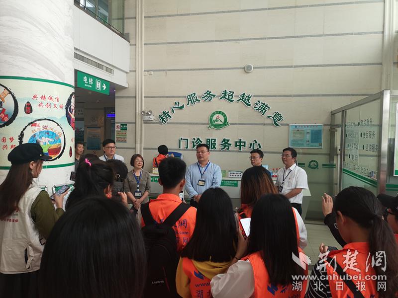 武汉市武东医院主要领导向网友们介绍医院情况。记者 陈泉 摄