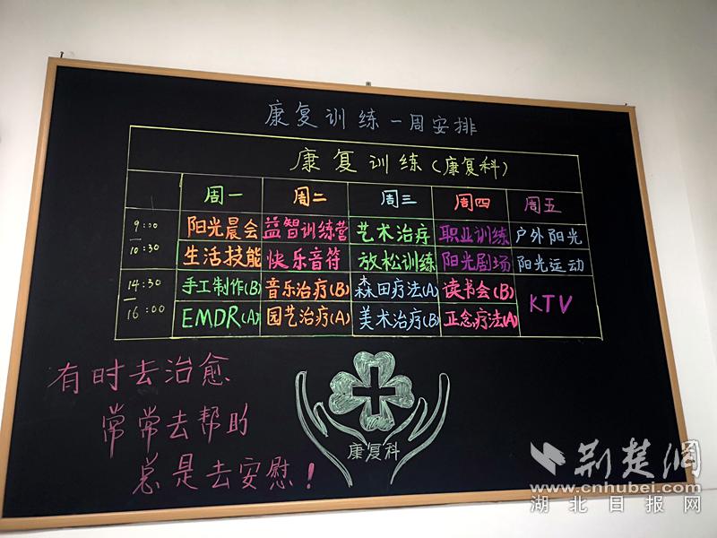 武东医院精神康复科黑板报。记者 陈泉 摄