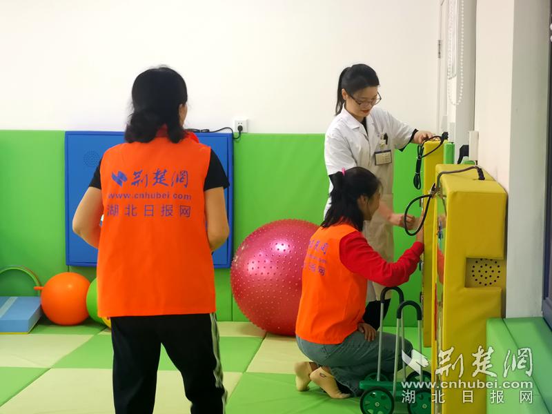 在音乐治疗室,皮鼓类打击乐器、木质类打击乐器、有音高的打击乐器、金属类打击乐器、散响类乐器、电钢琴……总价值超过几十万的音乐器材陈列整齐。来自荆楚网东湖社区、湖北日报大学生记者团的几位体验者与康复科工作人员围坐在一起,体验了一堂近30分钟的音乐治疗课程。