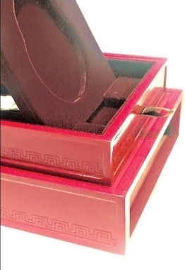 奖牌盒采用的是楚式漆艺中的素漆木胎工艺