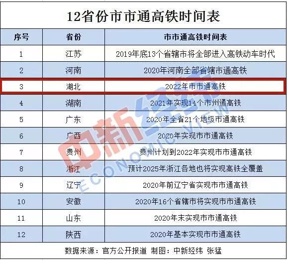同时,各地纷纷加快市市通高铁的脚步。据媒体不完全统计,又有12省份市市通高铁时间表也相继出炉。到2022年,湖北将实现市市通高铁!