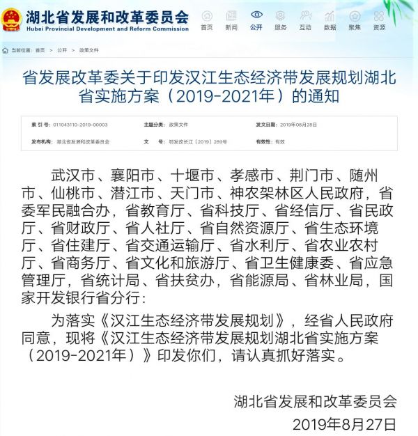 近日,湖北省印发《汉江生态经济带发展规划湖北省实施方案(2019-2021年)》(简称实施方案),对汉江经济带具体建设制定了新方案。