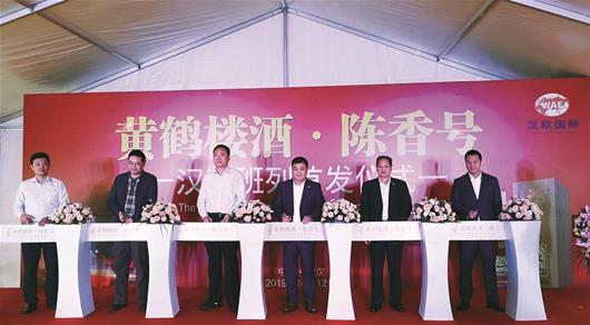图为:“黄鹤楼酒·陈香号”汉欧班列首发仪式