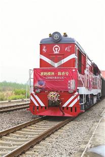 图为:“黄鹤楼酒·陈香号”汉欧班列