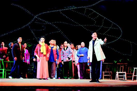 图为:8月18日,由湖北荆门市艺术剧院创作的大型现代花鼓戏《乡月照人还》在北京全国地方戏演出中心上演。(新华社发)