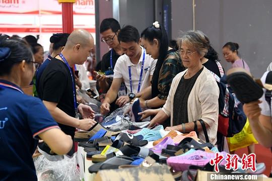9月23日,在广西南宁举办的第16届中国-东盟博览会上,轻便舒适的越南拖鞋销售火爆。中新社记者 俞靖 摄