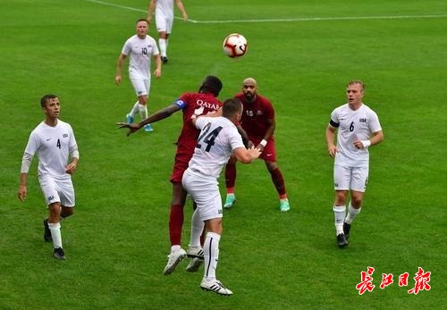 卡塔尔队与美国队在比赛中。记者李永刚 摄