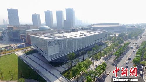 资料图:航拍武汉军运会主媒体中心外景。中新社记者 郑子颜 摄