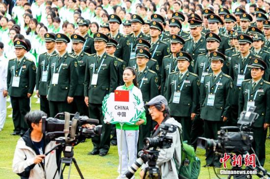 10月11日,第七届世界军人运动会运动员村正式开村,中国代表团成为首批入住团队。图为运动员村开村仪式。中新社记者 张畅 摄