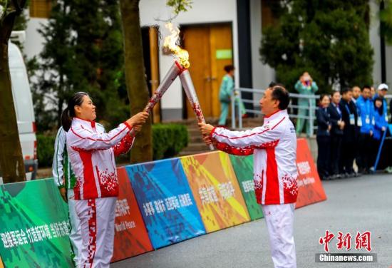10月16日,第七届世界军人运动会火炬传递活动最后一站在武汉东湖绿道举行。中新社记者 张畅 摄