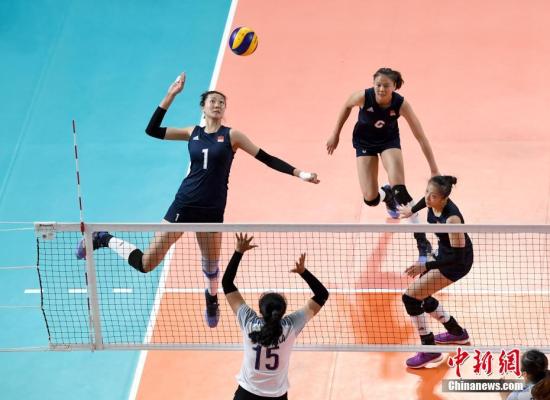 资料图:中国女排袁心玥(1号)在比赛中扣球。中新社记者 侯宇 摄