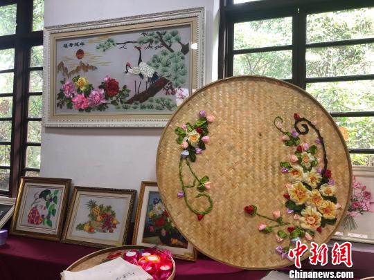 育才学校学生在“感恩的礼物”课程中制作的丝带绣作品。 刘心羽 摄