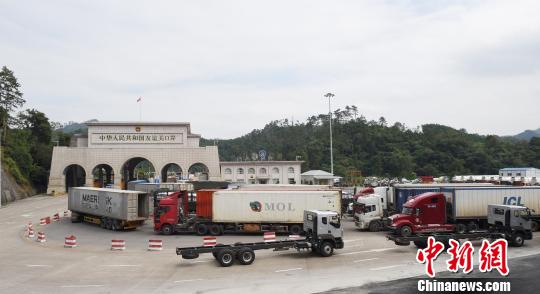 图为广西凭祥综合保税区车流滚滚。 庞立坚 摄