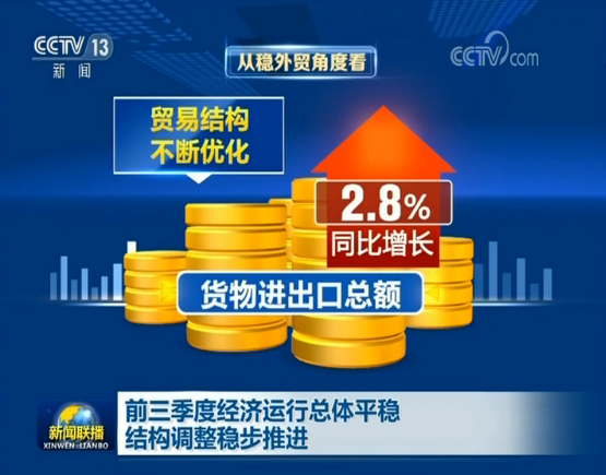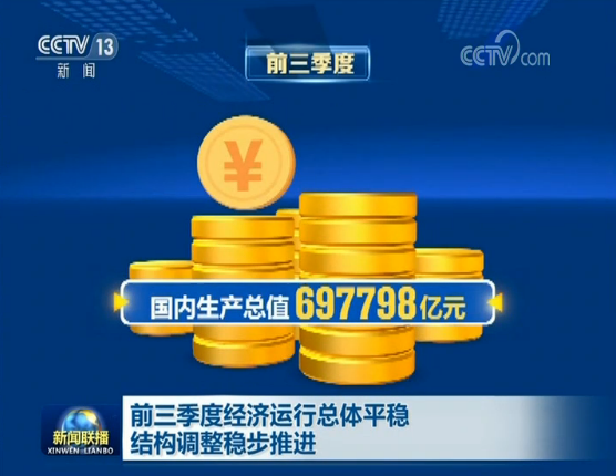 央视网消息(新闻联播):国务院新闻办今天(18日)举行新闻发布会,公布前三季度国民经济主要指标,数据显示,中国经济运行总体平稳,结构调整稳步推进。