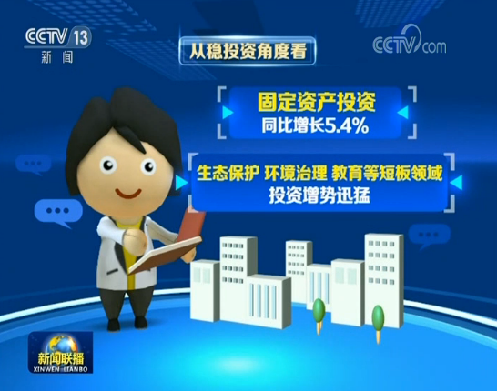 从稳投资角度看,固定资产投资同比增长5.4%,生态保护、环境治理、教育等短板领域投资增势迅猛。