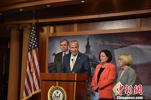 资料图:美国国会参议院民主党领袖舒默(左二)。中新社记者 沙晗汀 摄