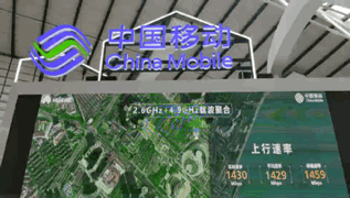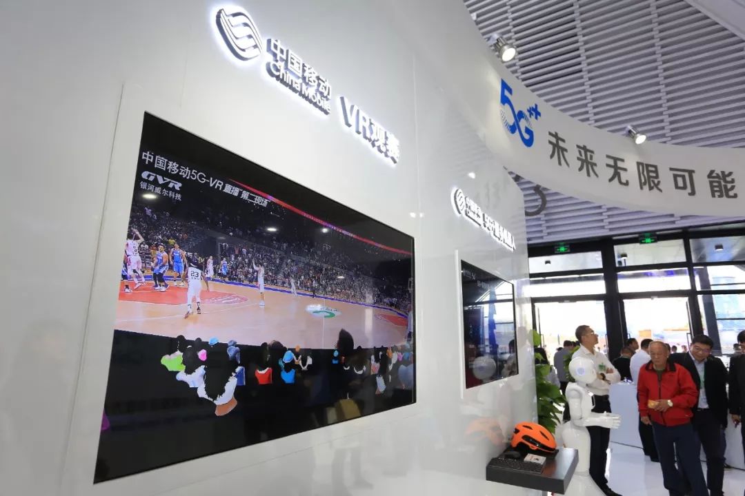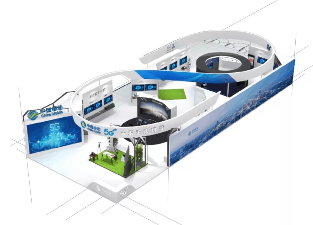 造型独特的中国移动展区以“∞”型的设计,象征着5G看移动,未来无限可能!