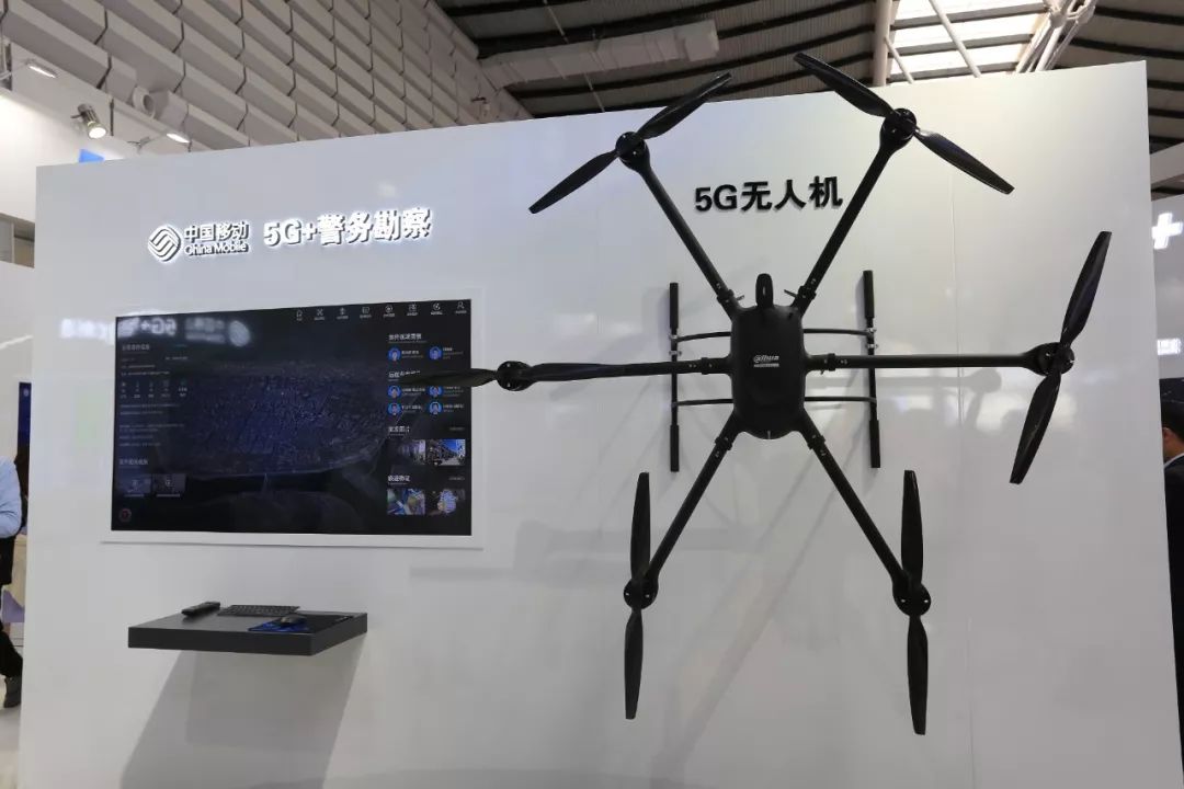 另一侧的5G+警务勘察展台,展示了5G网络结合5G无人机等设备,真正实现“科技强警,服务实战”。