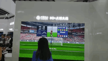 5G+点球大战,只需要站在指定区域,用力一踢,屏幕中的足球随之飞出。