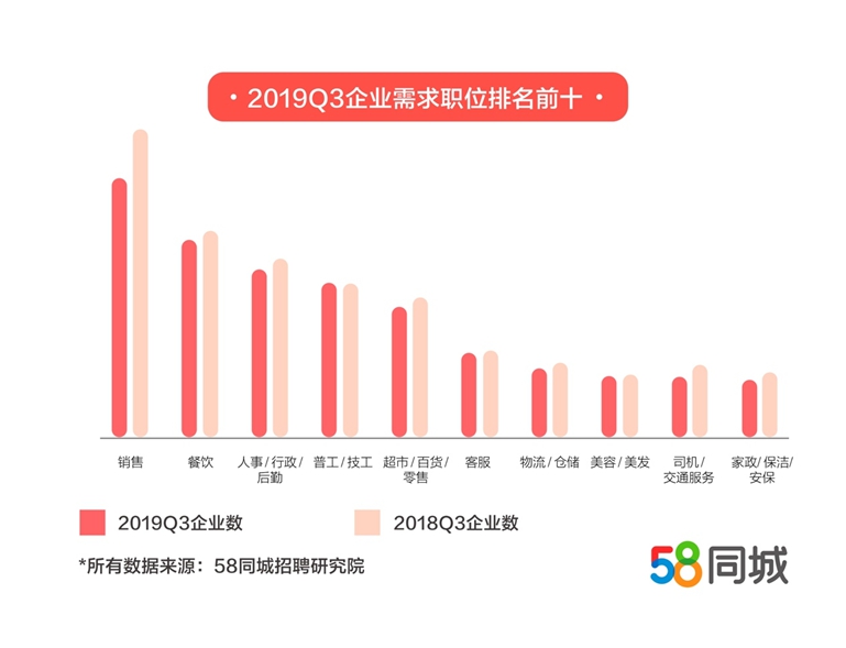 中新经纬客户端10月21日电 58同城招聘研究院日前发布的《2019三季度人才流动报告》显示,三季度,普工/技工招聘及求职增幅最高,销售招聘需求最大,司机平均薪资达到10639元,餐饮企业平均薪资增长最快。