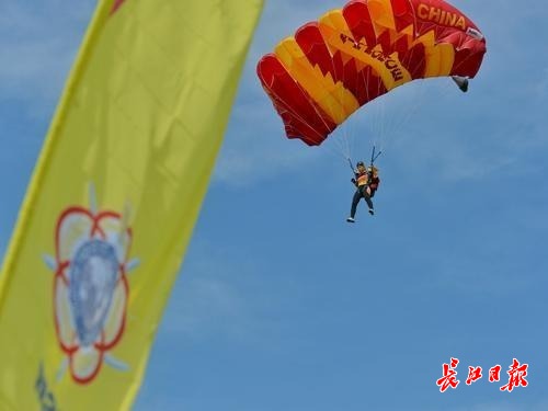 长江日报-长江网10月22日讯 22日上午,汉南通用航空机场跳伞场地上响起热烈的欢呼声, 经过女子个人特技项目5轮的比拼,21岁年轻队员邢雅萍获得中国跳伞队本届军运会首枚金牌,这位首次参加军运会的小将还实现该项目金牌零突破,同时她也是女子青年个人特技的冠军。