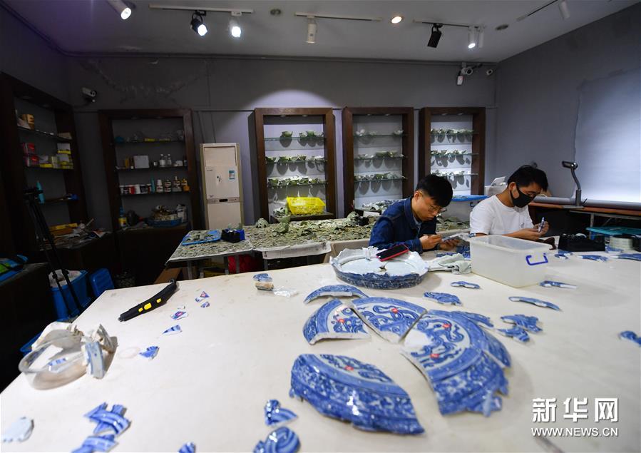 景德镇市御窑厂工作人员利用历史遗留的残片修复陶瓷(10月17日摄)。 新华社记者 胡晨欢 摄