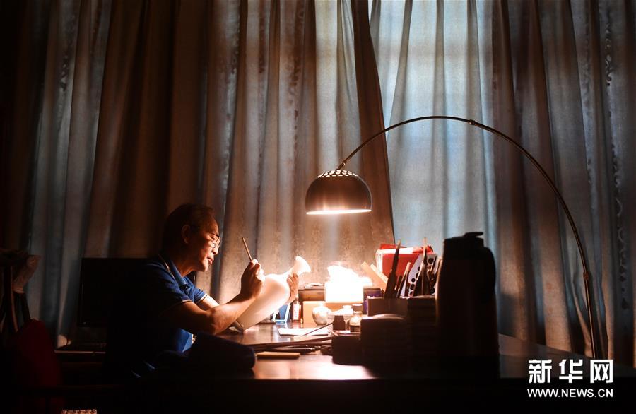 景德镇陶瓷艺人在工作室进行陶瓷绘画(8月1日摄)。 新华社记者 胡晨欢 摄