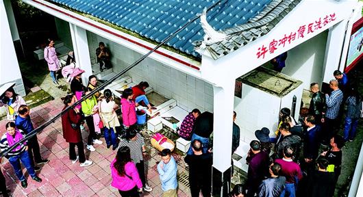 右图:与三峡大坝为邻的许家冲村。下图:10月17日,宜昌市夷陵区太平溪镇许家冲村村民便民洗衣池边围满了前来参观的游客,每天,来自全国各地的游客络绎不绝走进这个生态文明的新山村参观。25年前,为支援三峡工程建设,许家冲村人义无反顾献出家园;25年以来,许家冲移民群众用实际行动,描绘出乡村振兴新画卷,如今,许家冲村成为乡村振兴示范村。(湖北日报全媒记者 刘曙松 通讯员 李重庆 摄)