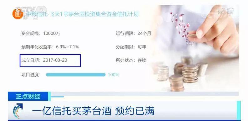 最早成立的一只是“中粮信托·飞天1号茅台酒投资集合资金信托计划”,公开资料显示,该信托计划成立于2017年3月20日,募集资金主要投资于有升值空间的茅台酒产品。