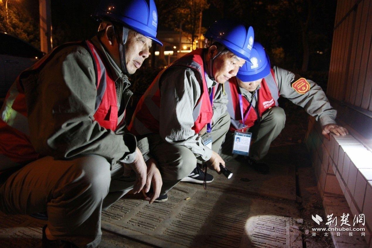 嘉鱼县供电公司退伍军人保电队员在夜间检查电缆通道的线路。(通讯员供图)
