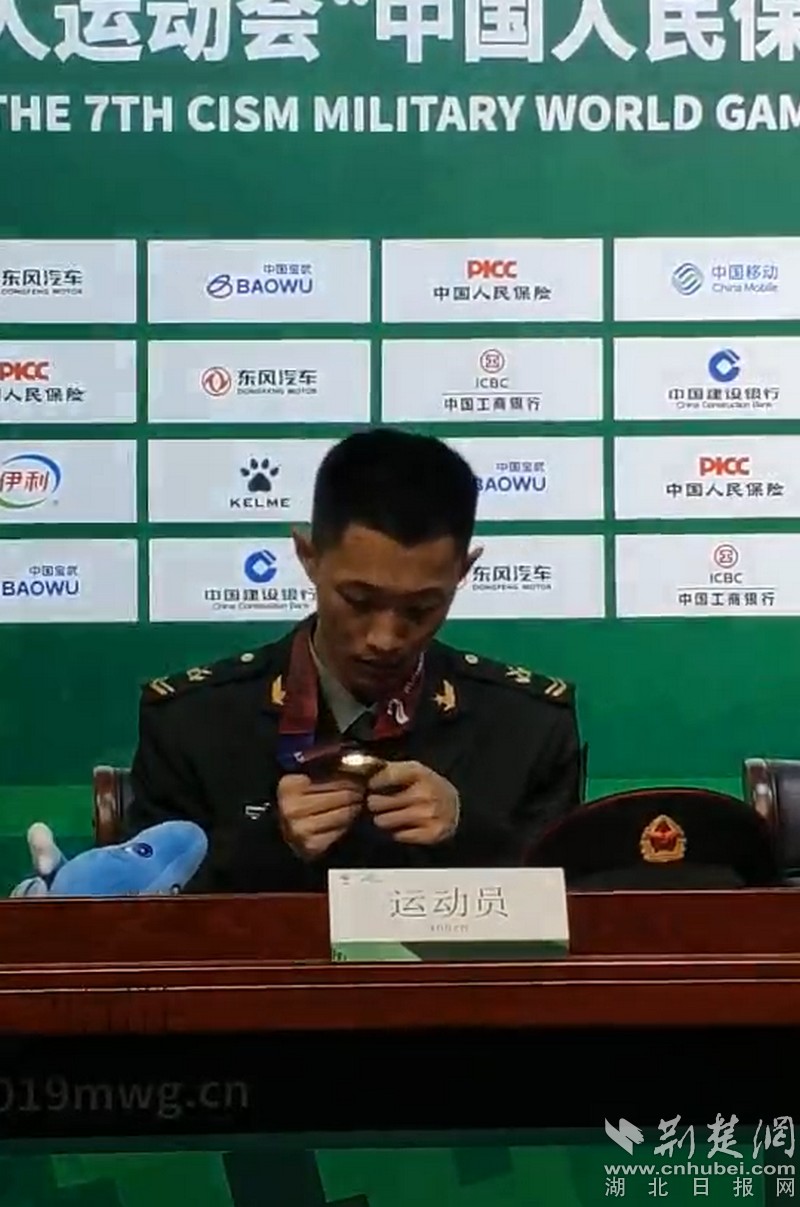 当天上午,中国男子跳远选手王嘉男斩获了一枚金牌。赛后的新闻发布会上,王嘉男早早到达现场,他没有玩手机,也没有闲聊,而是认真地整理军装,然后一遍又一遍地擦拭刚刚拿到手的奖牌,神情专注,与比赛时的全神贯注别无二致。记者被深深打动,及时记录下了这一幕,视频发布到了网上,并取名“每一枚金牌都来之不易,中国队加油!”,得到了无数网友的点赞。