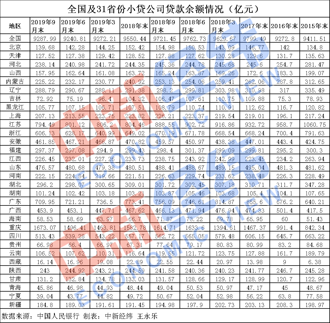 31省份小贷公司三季度余额公布:4连降终结,重庆创新高
