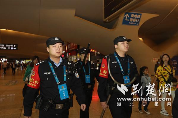 就在章凡巡查的同时,武汉车站派出所值勤巡逻队队长刘兵,正带领民警在出站口巡逻值守。