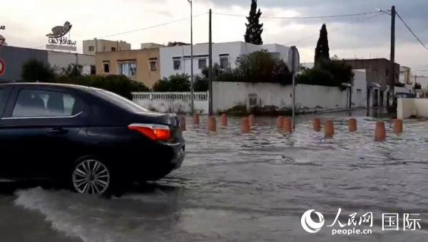 人民网讯 因连降大暴雨,突尼斯共和国首都突尼斯许多道路坍塌,车辆被冲走,城市交通完全瘫痪。