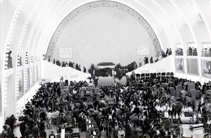 1957年4月,首届广交会来宾参观工业馆大厅。(图片来源:大型成就展网上展馆)