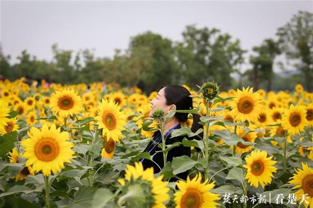 马鞍山森林公园内,栽植的一大片向日葵花海,“我是看朋友圈里晒的图,特意赶来拍照。”市民胡女士就在附近上班,今日趁午休开车过来“打卡”
