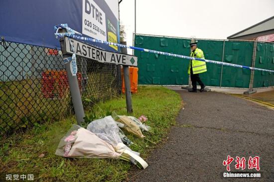 当地时间10月24日,英国埃塞克斯郡,人们在发现货车的地方献花悼念死者。英国警方23日凌晨在埃塞克斯郡货车货柜内发现39具尸体。目前,警方正在继续对25岁的卡车司机莫罗宾逊质询,后者因涉嫌谋杀被捕。图片来源:视觉中国