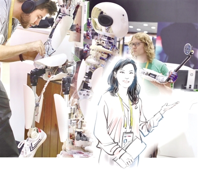 11月4日,德国英飞凌公司展台,工作人员正在调试装有英飞凌传感器的机器人Roboy。研发团队在机器人身上构建了一个非常发达的神经网络系统,传感器让这个机器人可以看得见、听得见,感知周围的世界,它现在已经学会了骑三轮车、卖冰淇淋。英飞凌工作人员谢孟云介绍说,在本届展会上,Roboy将与来宾拥抱自拍合影。明年,装有英飞凌传感系统的机器人将具备基础的医疗诊断功能。