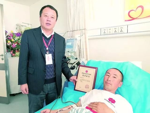 郭丛宏在捐献床上收到荣誉证书。于慧 摄