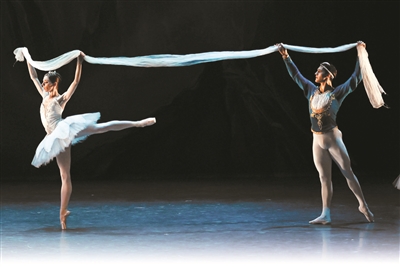 视觉呈现也是该剧吸引人的一大亮点。服装造型十分精良,设计和用色也独特而高级,东方风情做得格外突出。全剧除了幻影片段,就再没有传统意义上的“tutu”裙,而用露腰、纱质长裤等方式着力打破芭蕾服装的西方符号。此外,布景虽不豪华却充满细节和巧思。布景在台口加了金色花瓣状的框,虽简单却让视觉整体有了繁复花纹装饰的异域感,台口一道半透明软纱质地的小幕,开合时飘飘悠悠的,台上氛围一下子就“东方”起来了。二幕开头众幽灵排队出场的画面很考验全团整体水平,舞美设计很巧地藏拙,让幽灵们从群山掩映和雪花纷飞中出场,弱化了舞蹈作为视觉焦点,并让演员能在跳到布景后面时短暂调整。处处可以看出整个团队在这部作品上下的功夫。