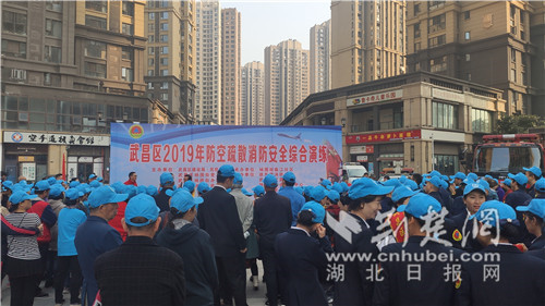 荆楚网客户端—荆楚网消息(记者叶辉、郝菁 通讯员陈杰、赖敏)11月8日上午,武昌区建设局(民防办)联合杨园街办事处在临江社区开展了“武昌区2019年防空疏散消防安全综合演练”活动,为临江社区居民奉上一堂生动的爱国主义和国防教育课程。