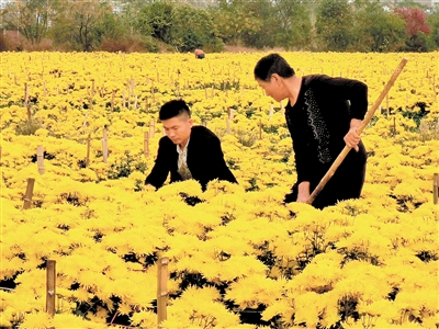 “这个产业用工量很大,从前期育苗锄草到后期摆花烘烤都需要人,我最初请的20多个工人里就有很多贫困户。”吴启发说,人工成本要占金丝皇菊整个生产成本的80%。村里的贫困户到吴启发的合作社做工,一年可以有1.6万元左右的收入。