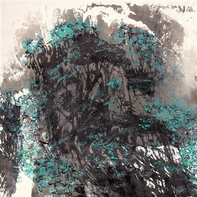 在手法上,巧妙表现雄浑之美。在中国山水画的变革上,唐人吴道子可谓开山鼻祖。吴道子写山水,不是写山水地势,而是以豪放之气,写胸中的山水,写客观山水和主观情怀溶化后重新铸成的山水。竹君在继承中探寻创新之路,力求逐步形成自己有个性的艺术语言。他的作品抛开了勾线填色的青绿山水的传统画法。山石有劈皴,但不僵硬。长于以线条定骨格,显灵动,活全局。作品《春山雨过》,以水冲墨,妙趣横生。作品《空潭》色墨互撞,辅之以跳跃的线条和分层次的晕染,让读画者似乎在空寂的山谷里,望一泓碧潭,闻一阵清香,观一群鱼游,享一处仙境。竹君用色也是大胆的。作品《岁月留痕》使用了大量暗色彩,将画面重心下坠,使读者对“岁月”沉重的感觉油然而生。画面通过经营色彩的冷暖关系,将浑厚、刚强、坚韧的艺术效果凸显出来。辅树,是构成其作品的一个特点。不少山水画家也常常辅树,但与整个作品风格很难形成烘托。竹君的辅树是较为精彩的。作品《天山松劲》在褐色的山崖边,巧妙地生长出一棵棵参天古松,直气森森,铁衣生涩,激情四射,大有影摇千尺龙蛇动,声撼半天风雨寒的艺术感觉。这些,恐怕也是对丁竹君山水画雄浑之美的最好诠释!