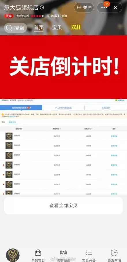 而在另一张截图中,该店商品显示已经清空,店主放出了多条被投诉“违规”的记录,并发出公告称进入“关店倒计时”。
