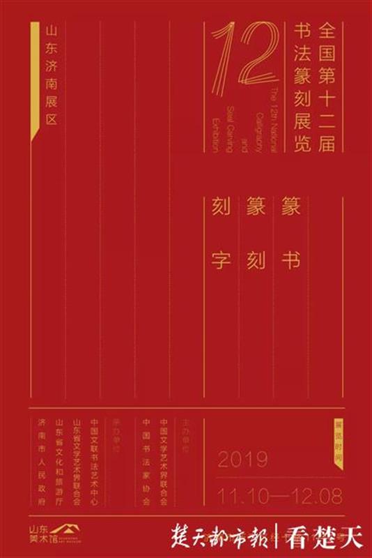 楚天都市报11月10日讯(记者夏雨)10日,“全国第十二届书法篆刻展览篆书篆刻刻字展”于山东美术馆亮相,揭开“全国第十二届书法篆刻展”的帷幕。现场,展出篆书篆刻刻字入展作品212件,还有特邀中国书法家协会顾问、主席团成员等名家作品70件,主题为“盛世中国”的全国书法名家作品88件,令全球书法爱好者大饱眼福。