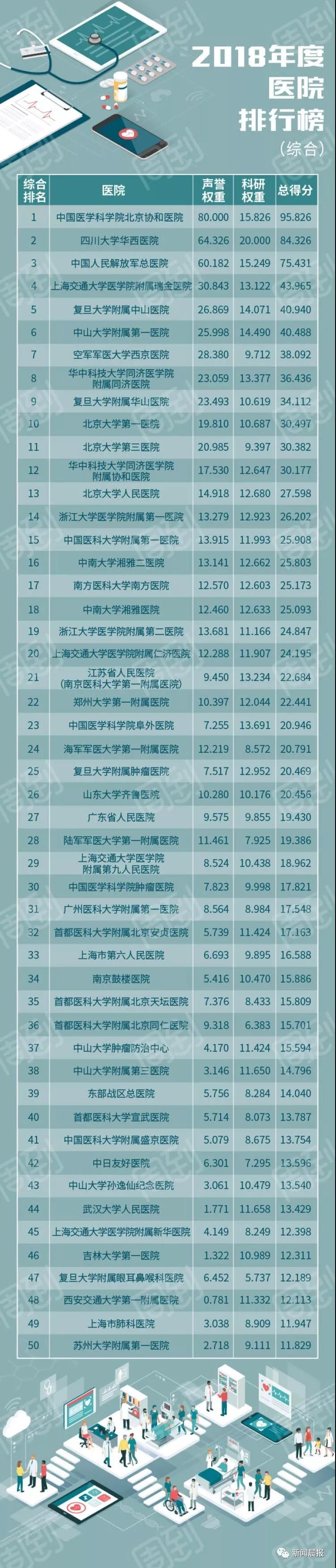 一年一度最新顶级医院排行榜出炉,