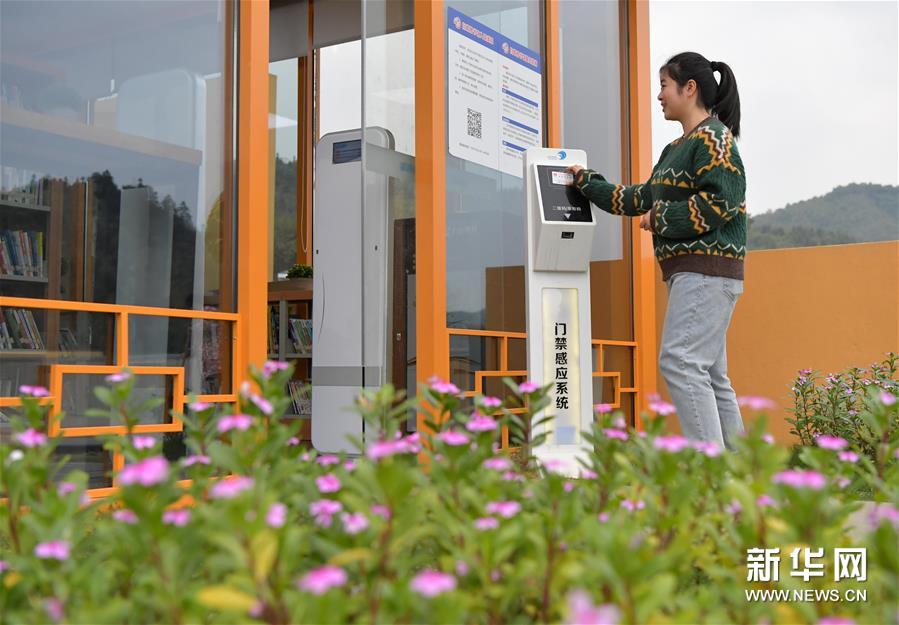 在江西省萍乡市湘东区,一位女士在“书香驿站”刷身份证进入(11月7日摄)。 新华社记者 彭昭之 摄