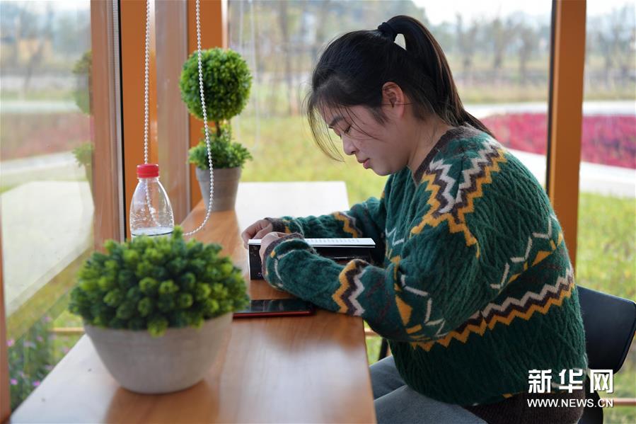 在江西省萍乡市湘东区,一位女士在“书香驿站”阅览图书(11月8日摄)。 新华社记者 彭昭之 摄