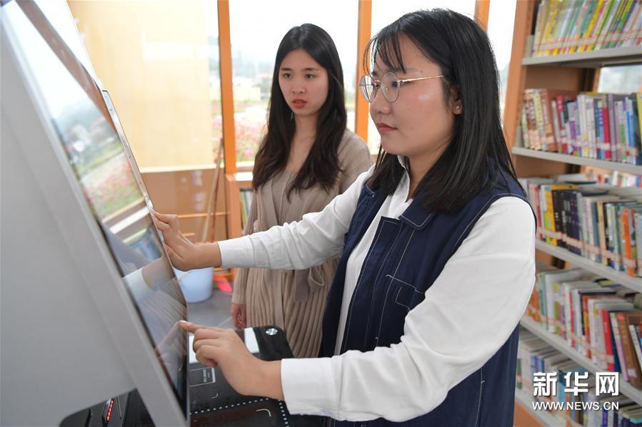 在江西省萍乡市湘东区,一位女士在“书香驿站”办理借书卡(11月7日摄)。